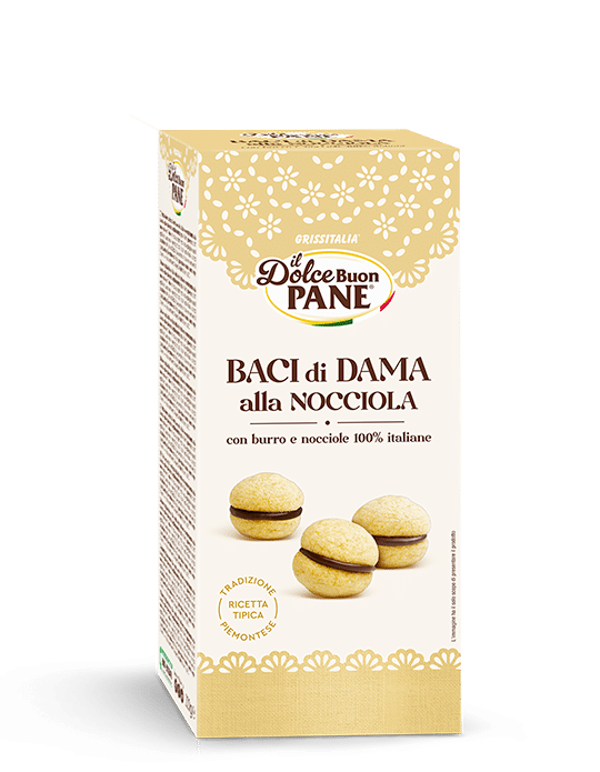 Baci di Dama alla Nocciola sunt biscuiți italieni tradiționali din regiunea Piemont, realizați din două jumătăți fragede pe bază de alune măcinate, unite de un strat fin de ciocolată. Textura este delicată și nisipoasă, iar gustul intens de alune se îmbină perfect cu dulceața ciocolatei.