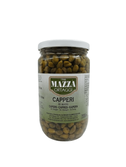 Capperi in Aceto sunt capere întregi, selecționate cu grijă și conservate în oțet pentru a păstra gustul lor intens și aroma specifică mediteraneană. Ideale pentru paste, pizza, salate, sosuri sau preparate din pește, caperele adaugă o notă rafinată și ușor acrișoară fiecărui fel de mâncare. Produs 100% italian, natural și fără conservanți artificiali.