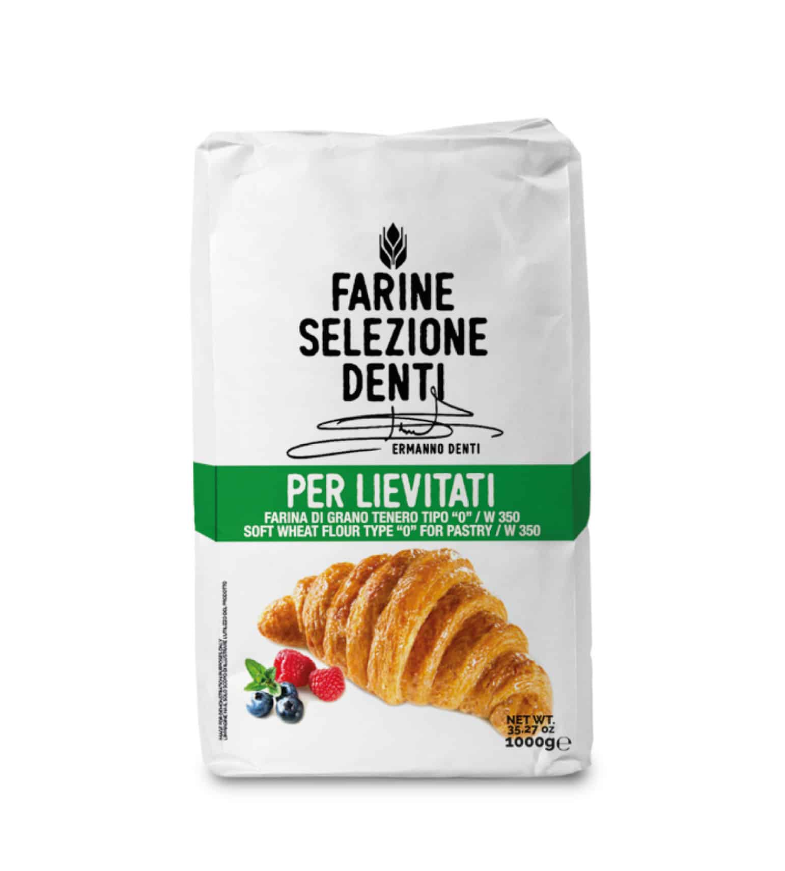 Făina „0” LIEVITATI DENTI W350-370 este o făină profesională de înaltă performanță, obținută din grâu moale de cea mai bună calitate, cu 14% conținut de proteine. Este perfectă pentru aluaturi dospite lente, produse de patiserie și cofetărie italiană precum panettone, colomba, croissant, brioșe și babà.
