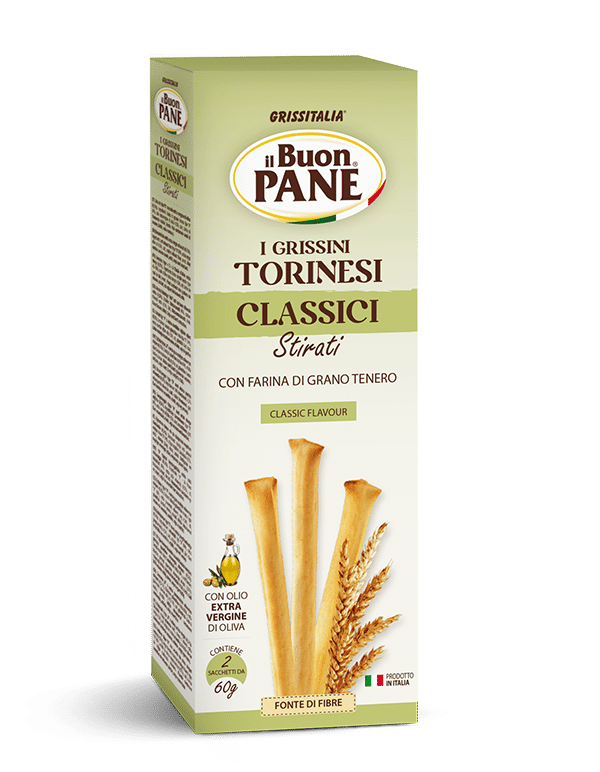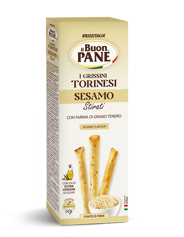 Grissini Torinesi cu susan sunt grisine italiene tradiționale, originare din regiunea Torino, preparate din aluat simplu și acoperite cu semințe de susan aromate. Au o textură crocantă și ușoară, fiind ideale pentru gustări rapide sau pentru a însoți diverse preparate.