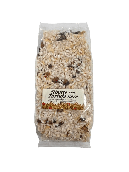 Risotto con Tartufo Nero este un preparat italian rafinat, realizat din orez atent selecționat și aromatizat cu trufe negre, oferind un gust intens și elegant, specific bucătăriei italiene de fine dining. Mixul este echilibrat pentru a obține un risotto cremos, cu aromă persistentă de trufă, ușor de preparat în doar câteva minute.