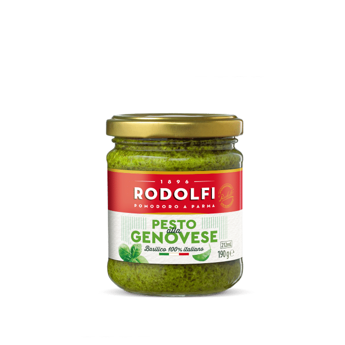 Pesto Genovese Rodolfi este un sos clasic italian, preparat din busuioc proaspăt, ulei, nuci și brânzeturi, conform rețetei tradiționale din Liguria. Are o aromă intensă de busuioc și o textură cremoasă, fiind ideal pentru preparate rapide și autentice.