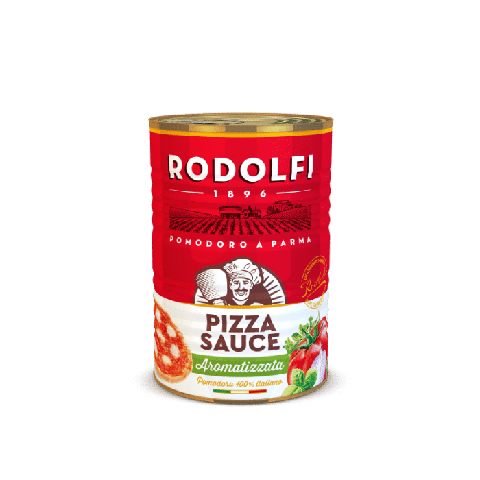 Pizza Sauce Aromatizzata Rodolfi este un sos italian gata de utilizare, obținut din roșii atent selecționate și îmbogățit cu ierburi aromatice mediteraneene (busuioc, oregano), pentru un gust echilibrat și autentic.