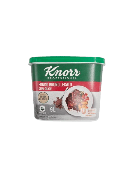 Demi-Glace Knorr (Fondo Bruno) este un preparat profesional pentru obținerea rapidă a unui sos brun clasic, cu gust bogat și echilibrat. Realizat din ingrediente de înaltă calitate, acest produs oferă baza perfectă pentru sosuri rafinate din carne, vânat sau legume. Ideal pentru restaurante și bucătării profesionale, permite reducerea timpului de gătire fără a compromite gustul autentic. Se dizolvă ușor în apă caldă, asigurând o consistență fină și lucioasă.