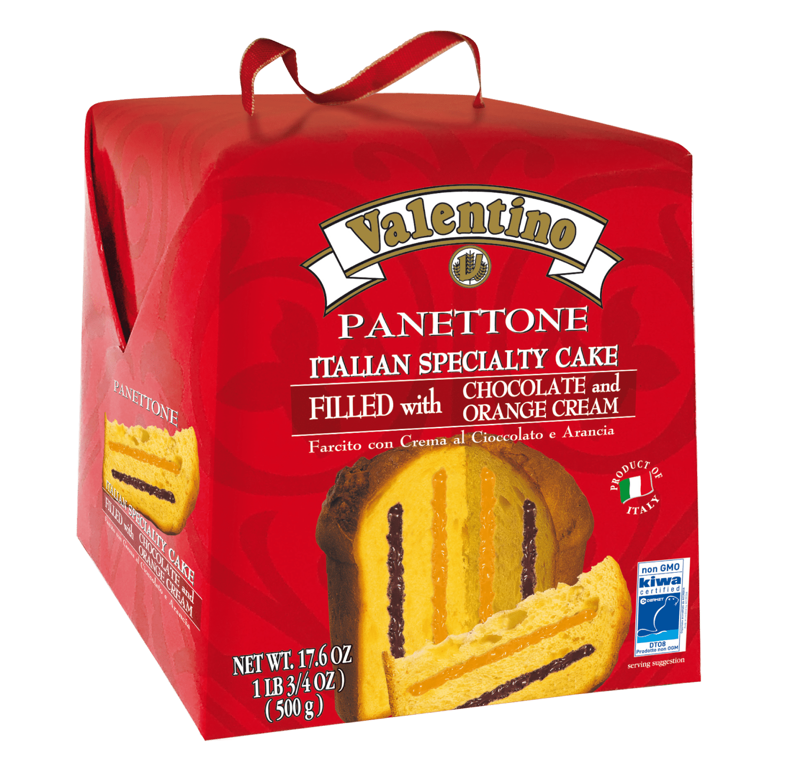 Panettone “Valentino” Crema Cioco & Arancia este o versiune modernă și rafinată a clasicului panettone italian. Aluatul moale și pufos, dospit lent, este umplut generos cu cremă fină de ciocolată și portocală, oferind un echilibru perfect între dulceața ciocolatei și prospețimea citrică. Ideal pentru sărbători, cadouri gourmet sau deserturi elegante. Produs 100% italian, fără coloranți artificiali.